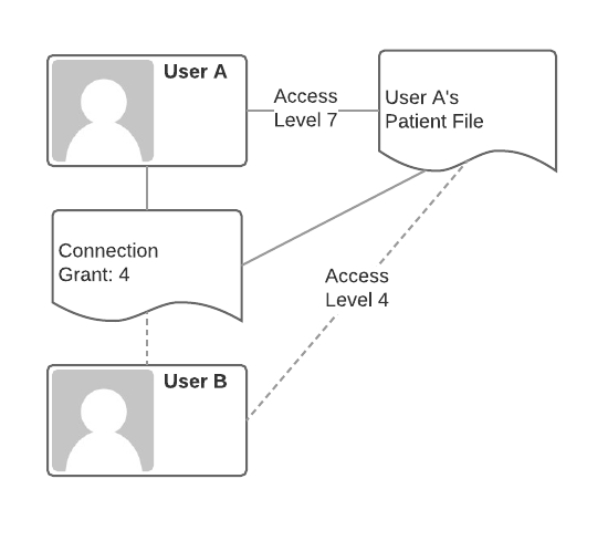 To grant User B access to the file, User A simply needs to create a connection between the patient file and User B and specify the level of access that should be granted.