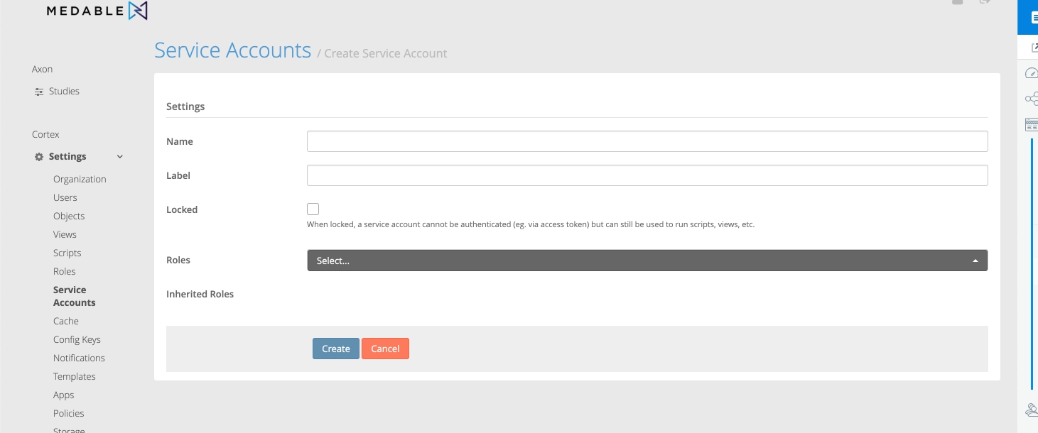 Service Accounts are also supported for deployment using the cortex developer tools. Documentation for installation and usage for the Cortex developer tools can be found here: https://github.com/Medable/mdctl.