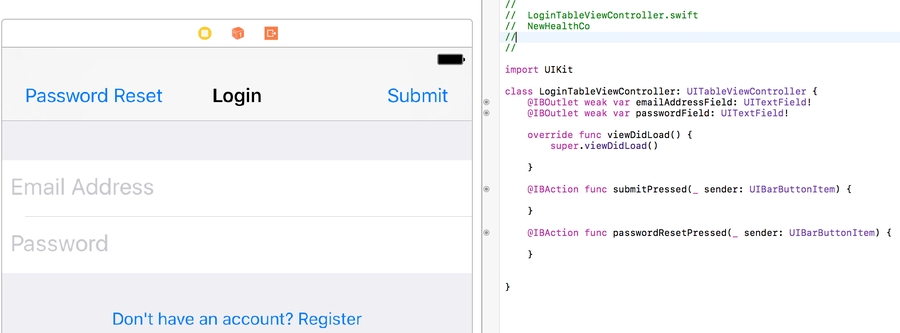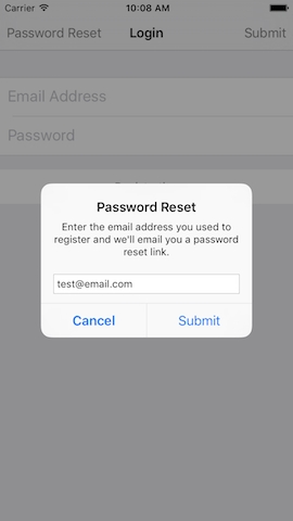 Callback returns error: Optional(kInvalidCredentials - auth - Invalid email/password combination -)Add a "Reset Password" button to the tab bar and corresponding IBAction