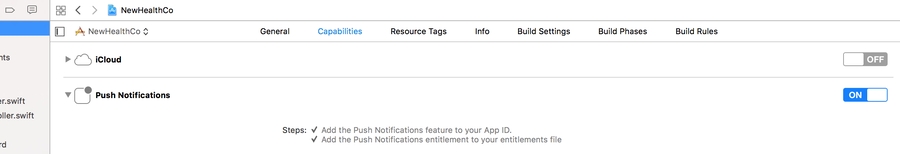 Xcode 8 makes it easier than ever to enable push notifications on your project. If you followed instructions correct to this point, you shoud just be able to switch on Push Notifications in the Capabilities section of your project settings.