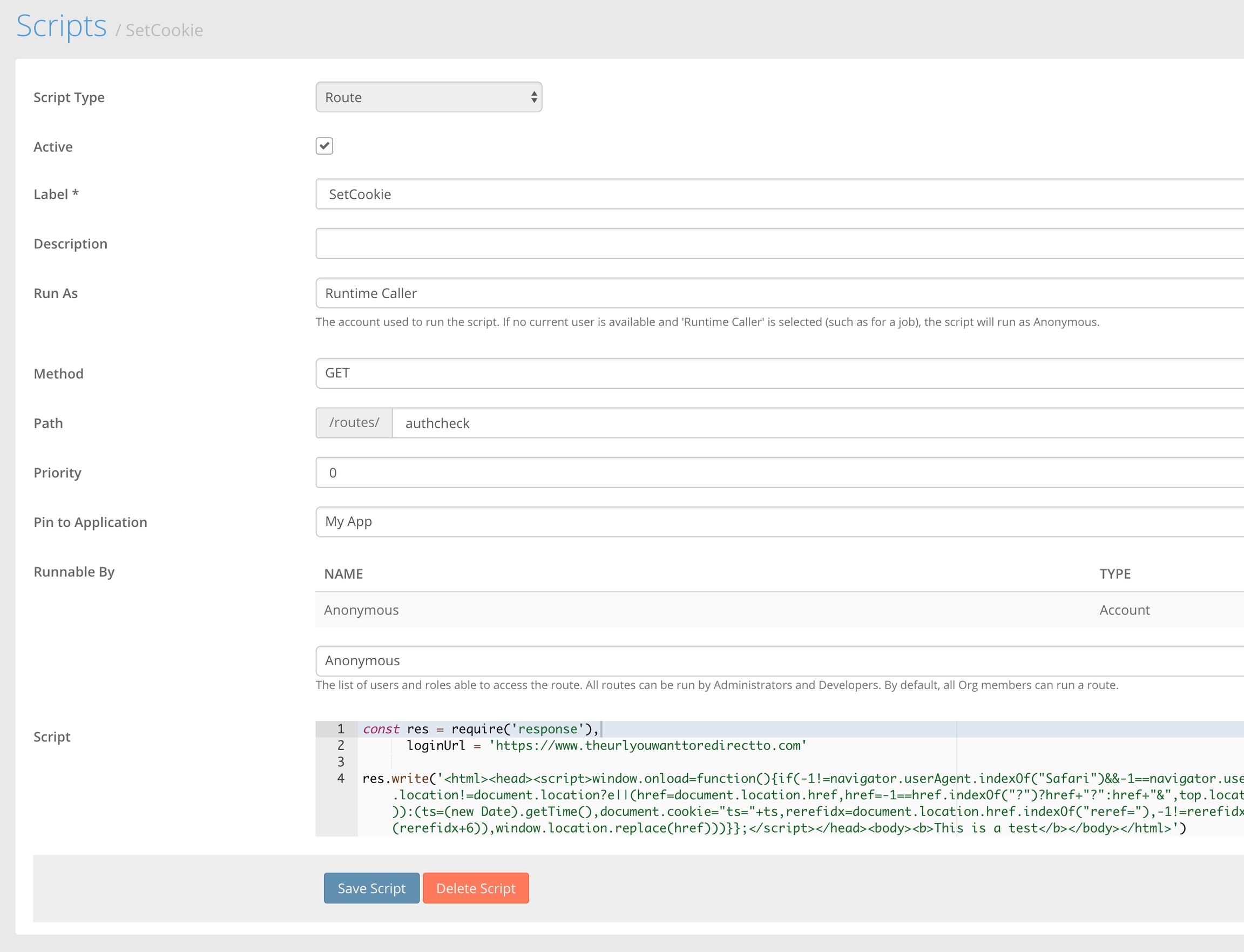 We're going to create our first custom script - a route that we navigate to from an invisible iframe in the web app to allow Medable to set an auth cookie on the browser.
